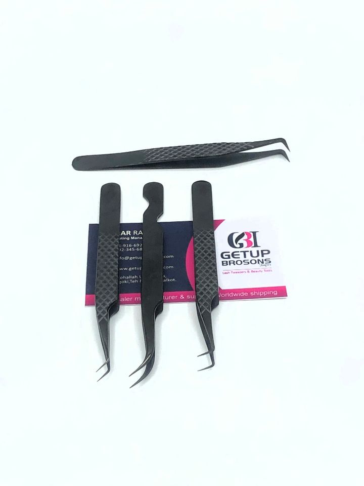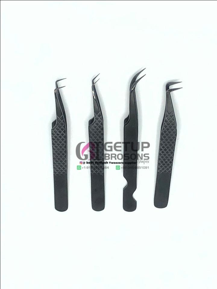 Pinzas profesionales para extensión de pestañas de acero inoxidable con el mejor diseño, diferentes estilos, instrumentos de belleza con agarre de diamante de Plasma negro