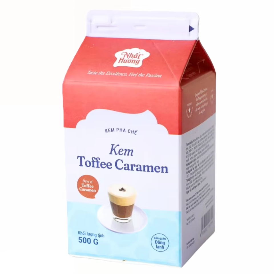 Crema para postres con sabor a caramelo y toffee, sin lácteos.Contenido