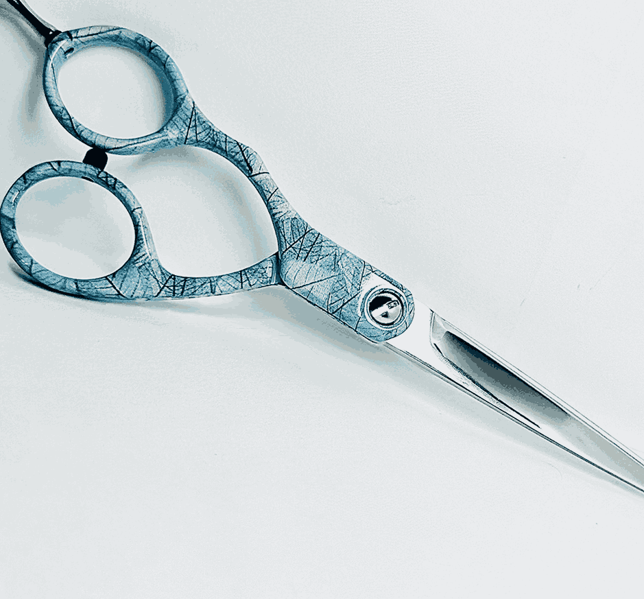 Tijeras de peluquería para diestros con punta de hoja afilada de acero inoxidable con Motivo de Hoja azul profesional