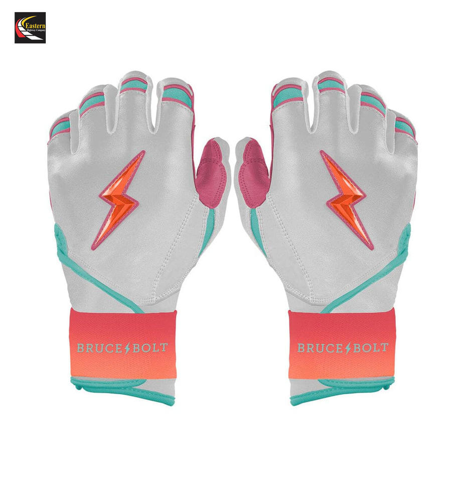 Guantes de Bateo de Béisbol Profesionales Bruce Bolt de Alta Calidad, Puños Largos, Cuero Dividido Premium, Antideslizantes, Logotipo y Diseño Personalizados
