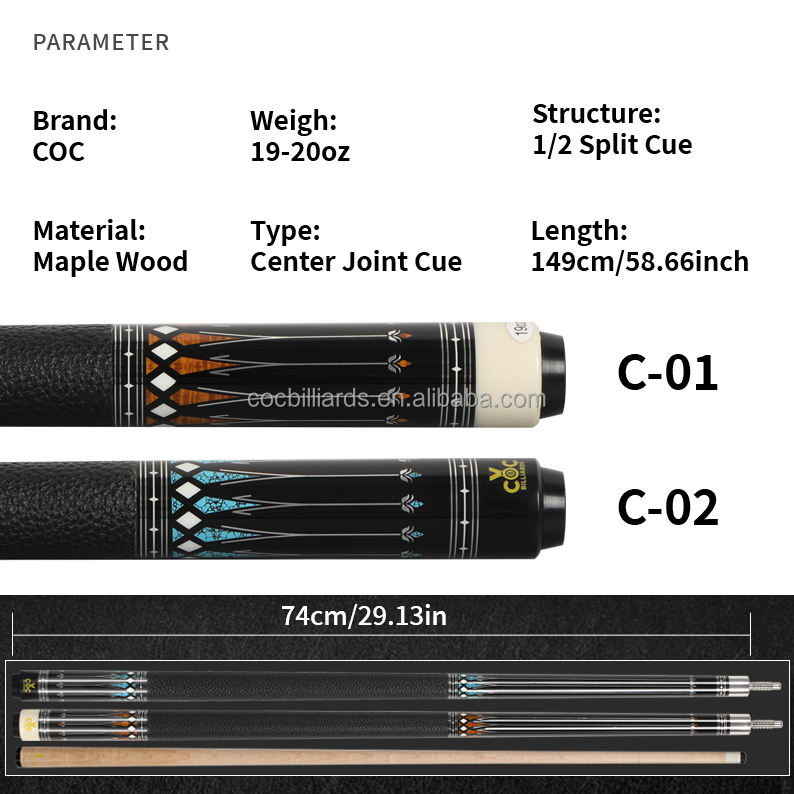 Taco de billar profesional de madera de arce canadiense con unión radial 3/8-8 para billar americano y bola 9