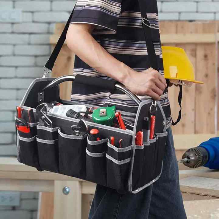Palabra clave:Bolsa de herramientas plegable, portátil y con múltiples bolsillos para electricista