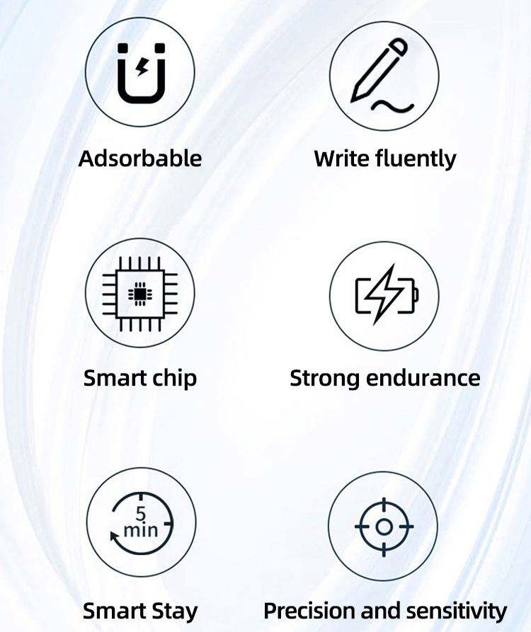 Tecnología de detección activa, Punta reemplazable, Rechazo De Palma, Detección del ángulo de inclinación, Atracción magnética