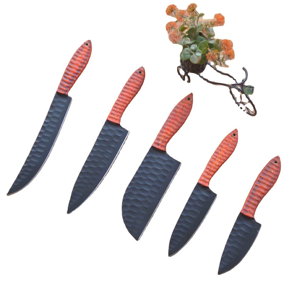 Juego de Cuchillos de Chef Profesionales, Hechos a Mano, de Acero al Carbono Forjado, 4 Piezas, Mango Octagonal de Madera, Ambidiestros, Duraderos y Ligeros