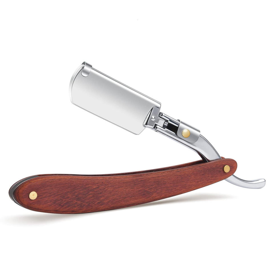 Maquinilla de afeitar de borde recto de cierre profesional para hombres 20 cuchillas de doble filo con escala de seguridad de madera natural