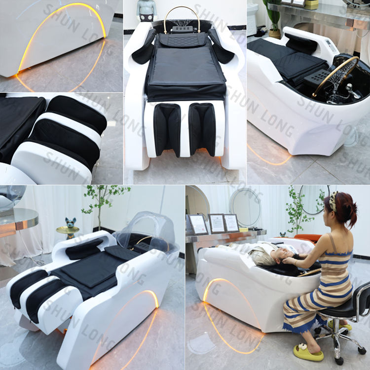 Salón de masaje eléctrico champú cama cabeza Spa masaje cama peluquería Silla de lavado con terapia de cabeza