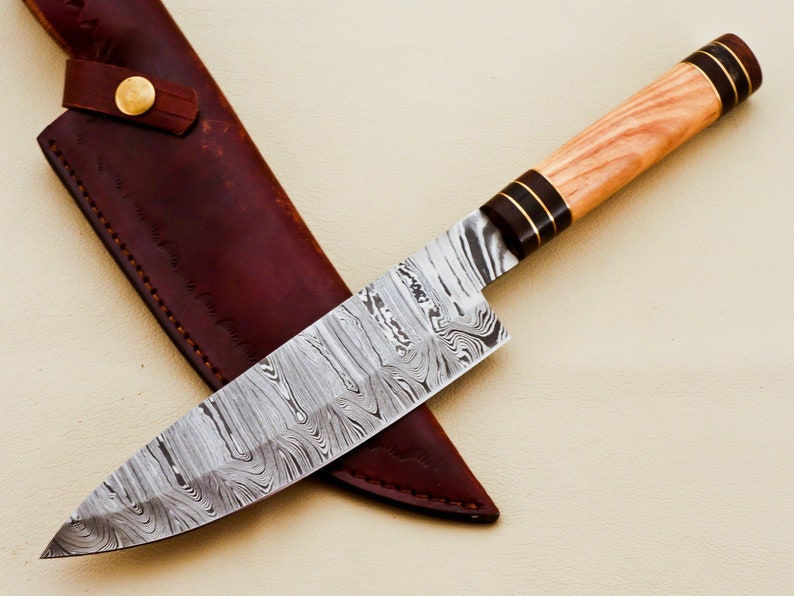 Cuchillo de chef de cocina profesional de alta durabilidad hecho a mano forjado Damasco acero mango de madera Apto para lavavajillas cuchillo de cocina