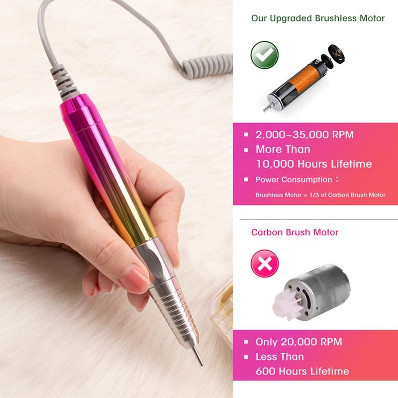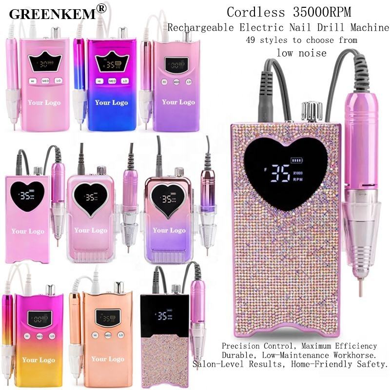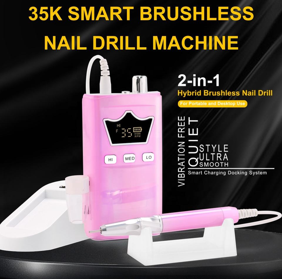Taladro Eléctrico Profesional Inalámbrico para Uñas, 35000 RPM, Portátil, de Escritorio, con Escobillas de Carbón, Recargable, Silencioso