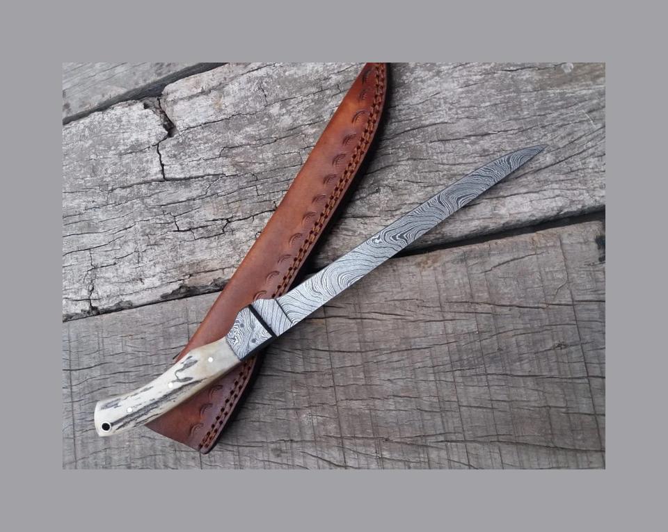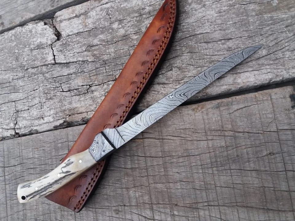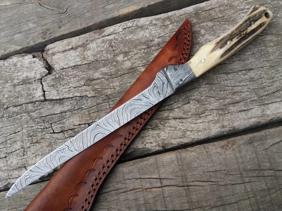 Material del mango:Cuerno de Ciervo, Acero de Damasco