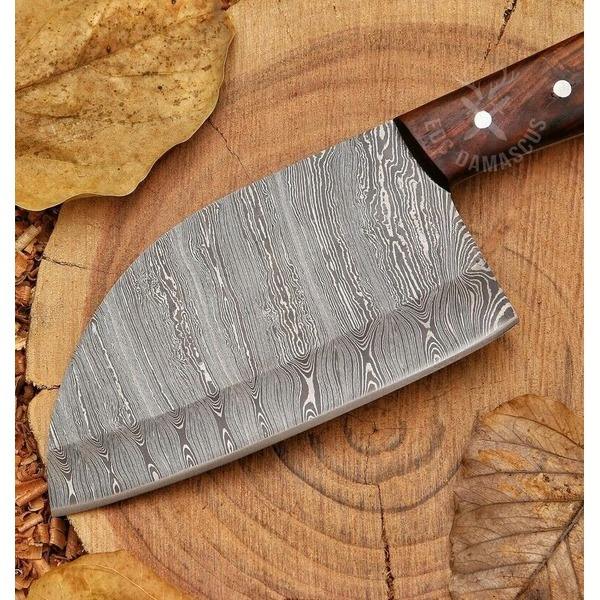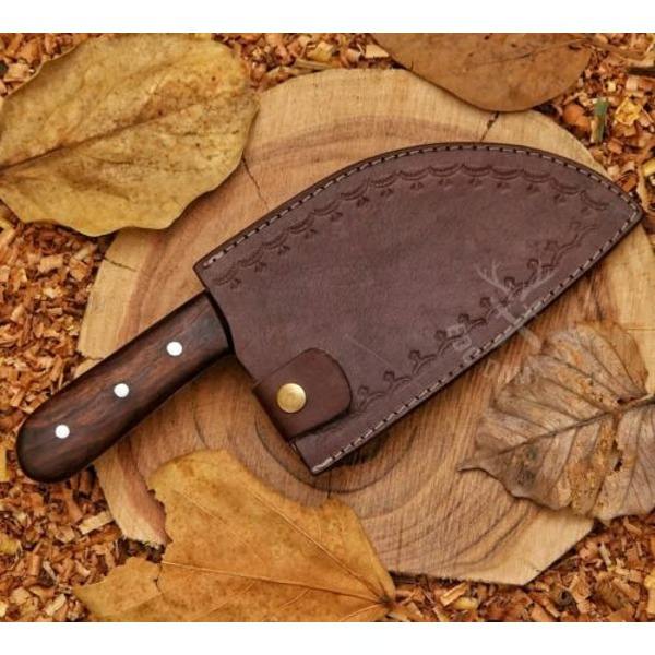 Cuchillo de cocina Santoku de hoja de acero de Damasco alto hecho a mano personalizado profesional con mango de madera Funda de cuero inoxidable