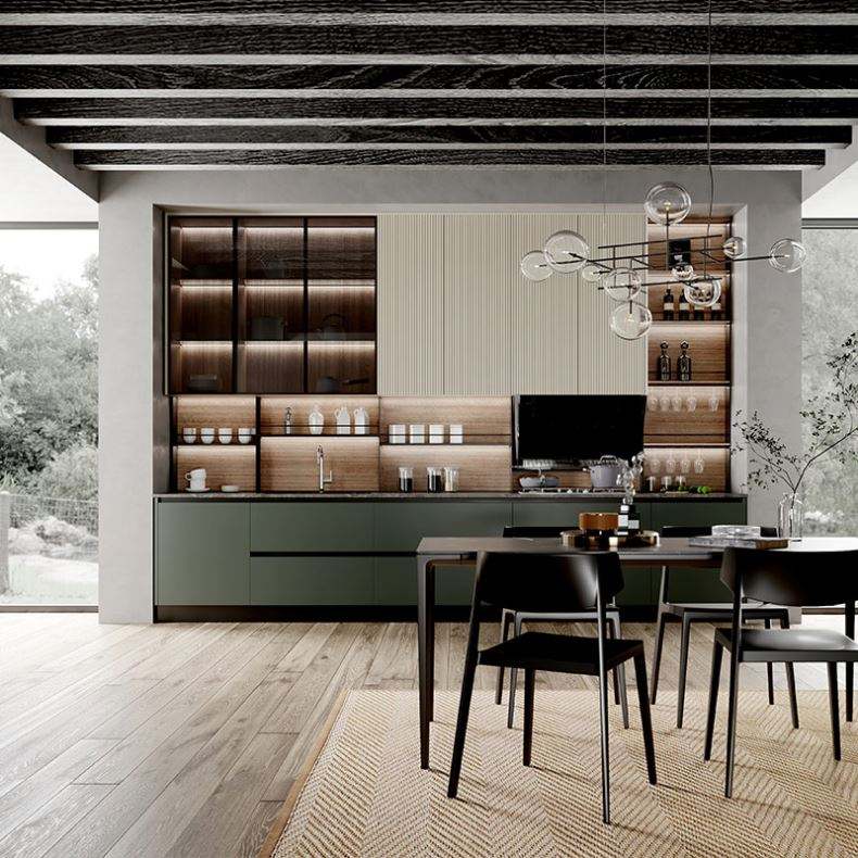 Armario de cocina modular, Cocina moderna, Respetuoso del medio ambiente, De madera, Fuego