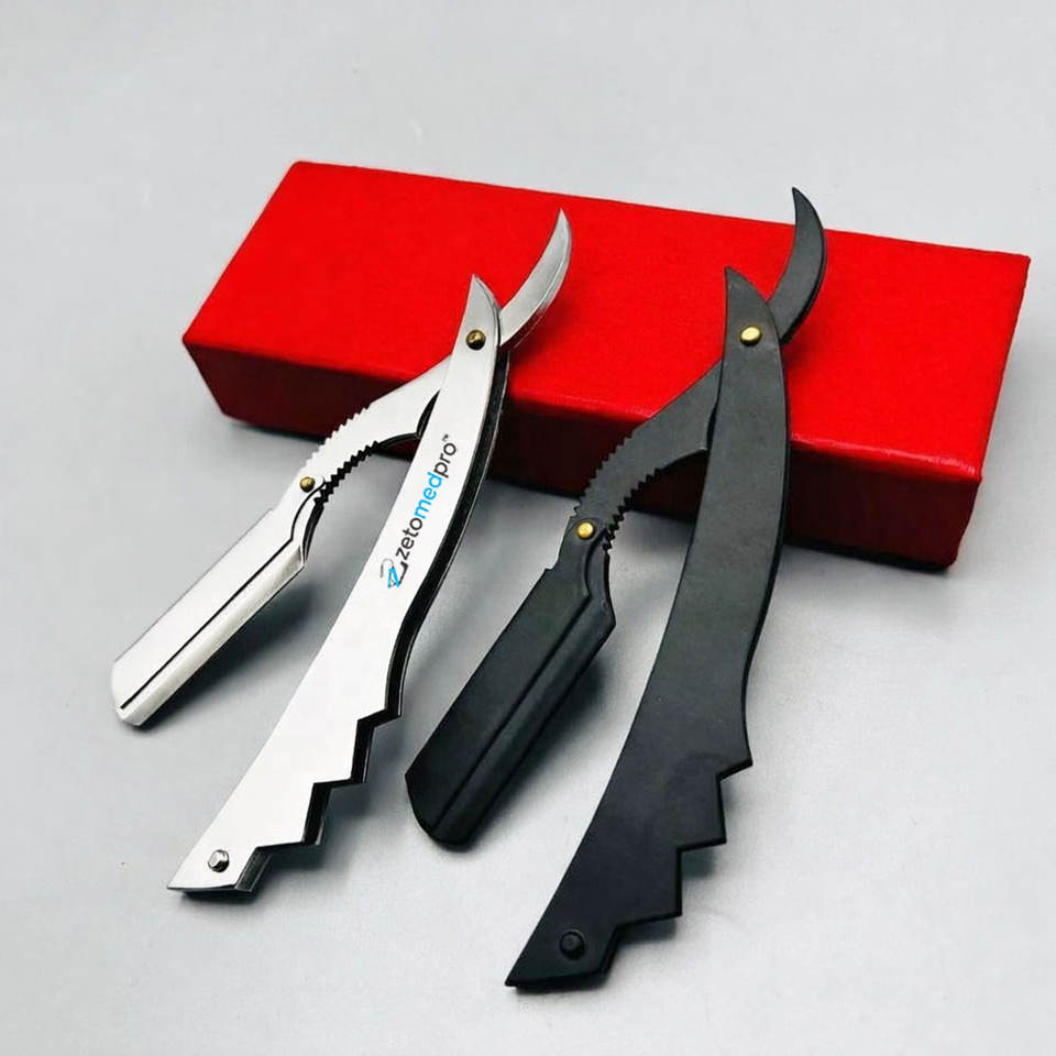 Navaja de Barbero Profesional de Acero Inoxidable con Logotipo Personalizado, Mango de Nuevo Diseño, Empaque Ecológico en Caja, para Uso en el Cuerpo