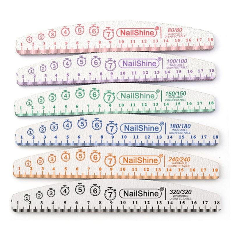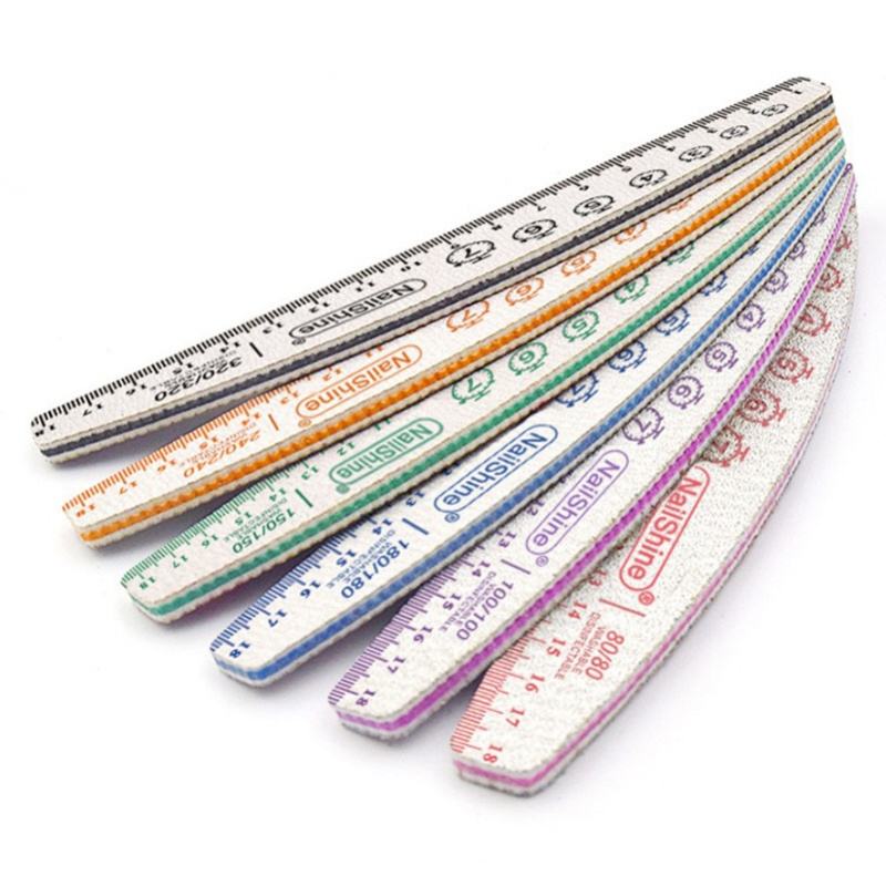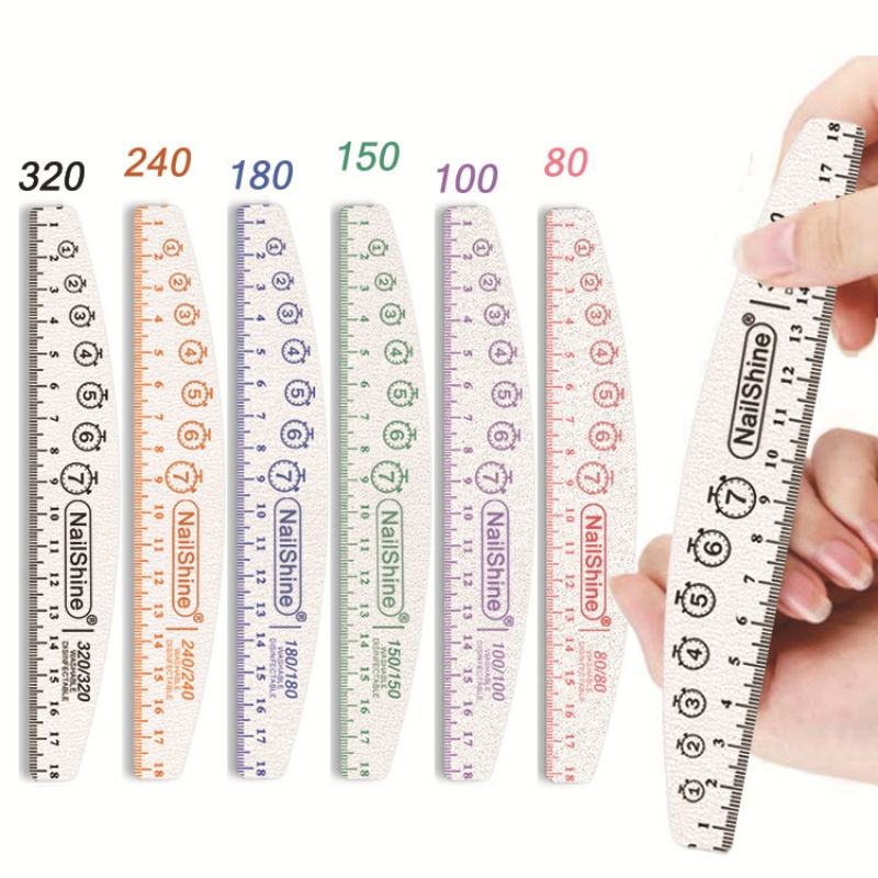 Lima de uñas de media luna con regla de doble cara con logotipo impreso personalizado profesional 80 100 150 240 320 Lima japonesa de lija de grano