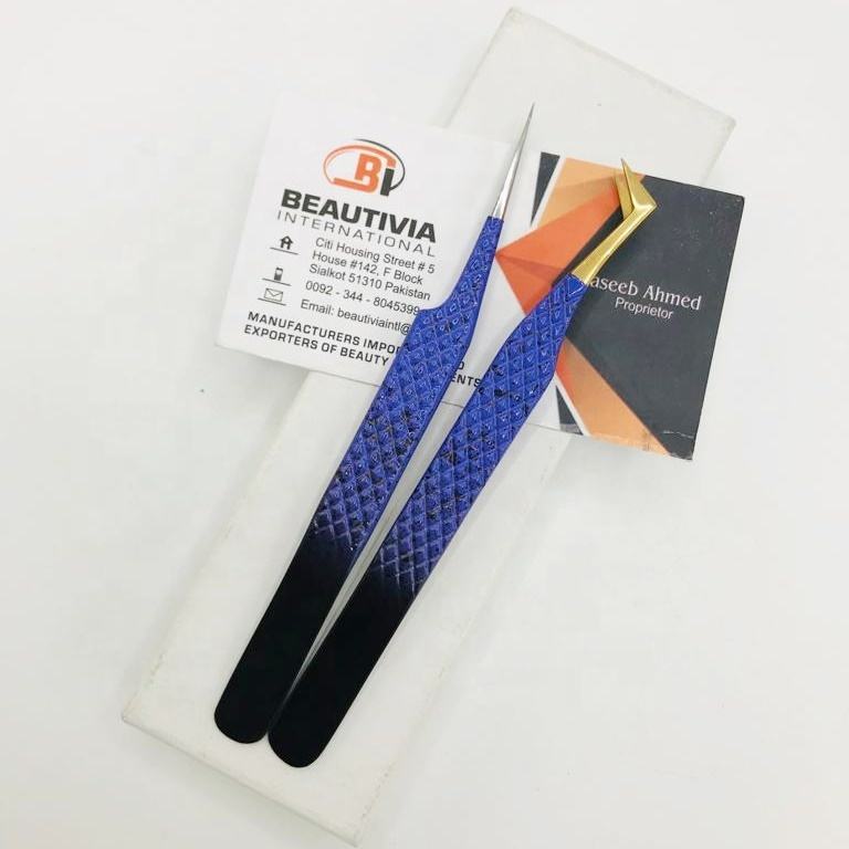 Pinzas de extensión de pestañas de acero inoxidable de dos tonos personalizadas profesionales Extensiones de pestañas de etiqueta privada sostenibles Punta puntiaguda