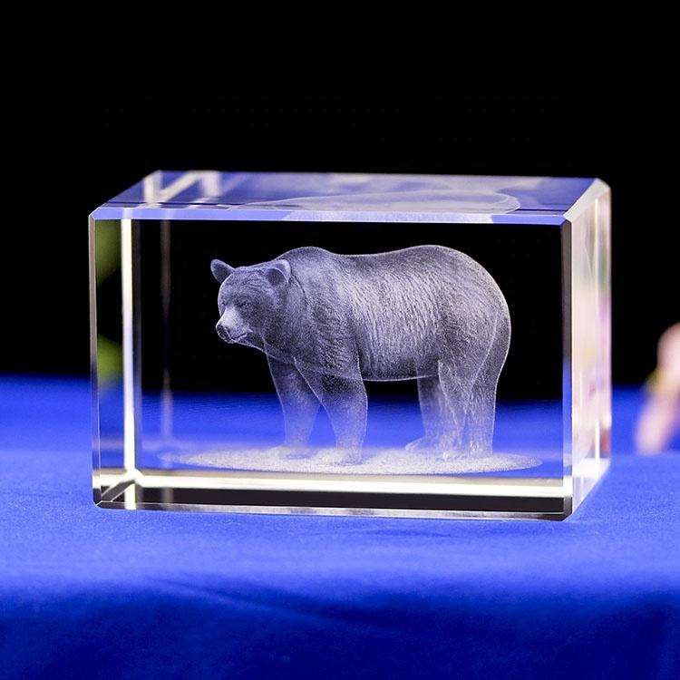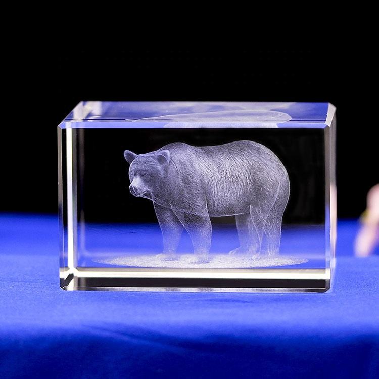 Pequeño puente profesional personalizado 3D oso grabado láser regalos de vidrio nuevo diseño animales Cubo de cristal con gran descuento
