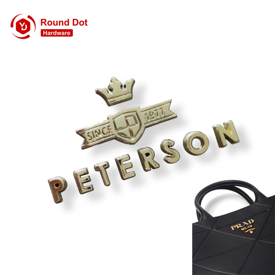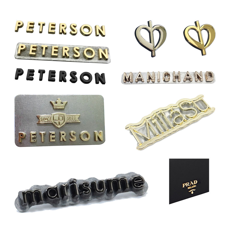 Logotipo de metal personalizado profesional para placa de nombre de marca individual de cuero Letras de logotipo separadas para bolsos y álbum de bodas