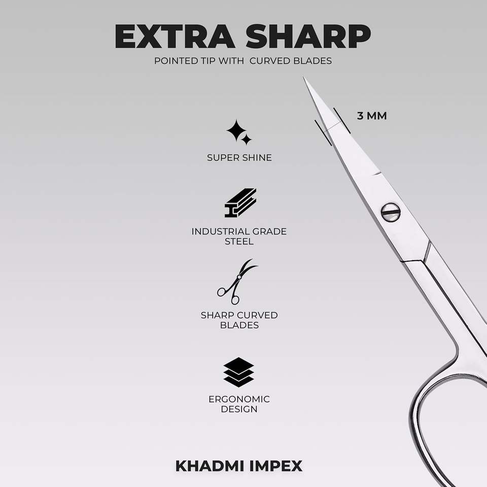 Tijeras Profesionales para Cutículas, Multiusos, de Acero Inoxidable, con Hojas Curvas, para Manicura, Uñas, Cejas y Pestañas