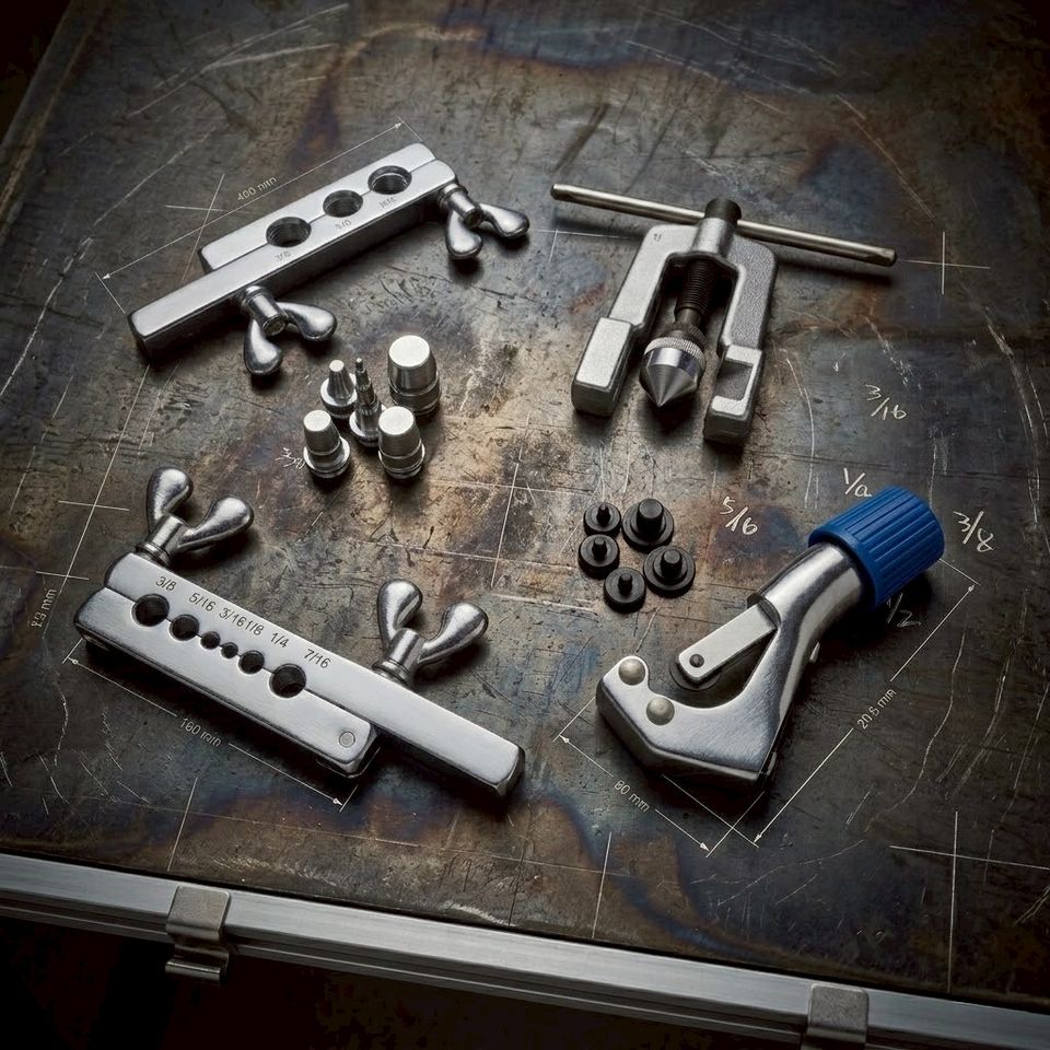 Kit de Corte Profesional para Reparación Automotriz, Juego de Abocardado con Adaptadores Dobles Incluidos para Tuberías de 3/16 a 1/2 Pulgada
