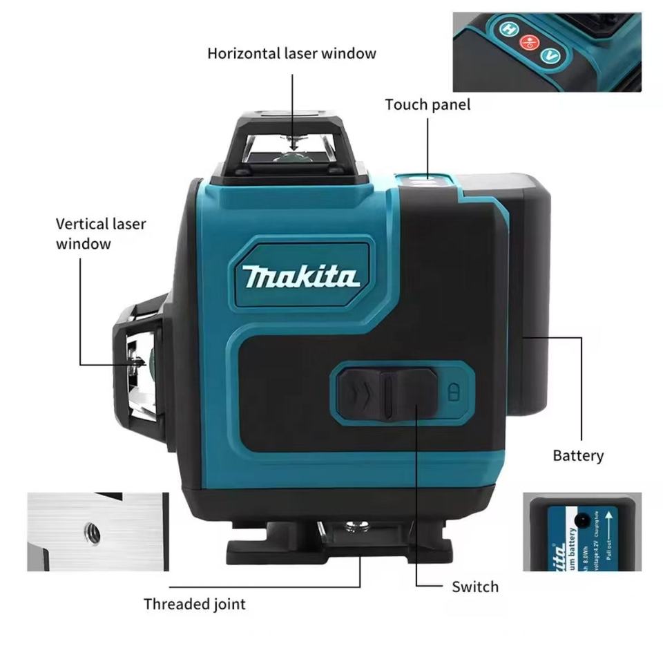 Nivel Láser Profesional para Bricolaje a Precio Económico 4D de 16 Líneas Nivel Láser Makita con Luz Verde Giratoria