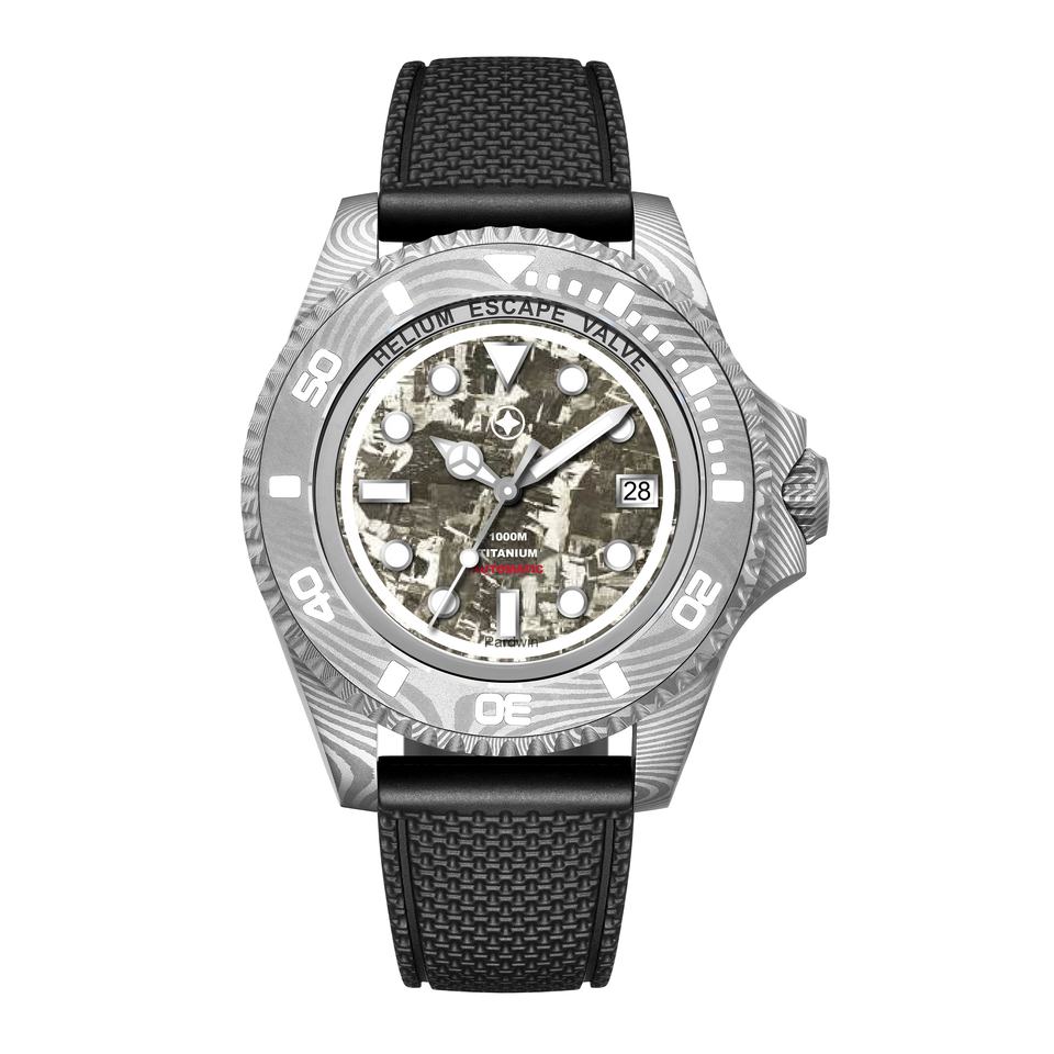 Reloj de Pulsera Profesional de Acero de Damasco Automático con Esfera de Titanio Cristalizado para Buceo 1000M ODM OEM
