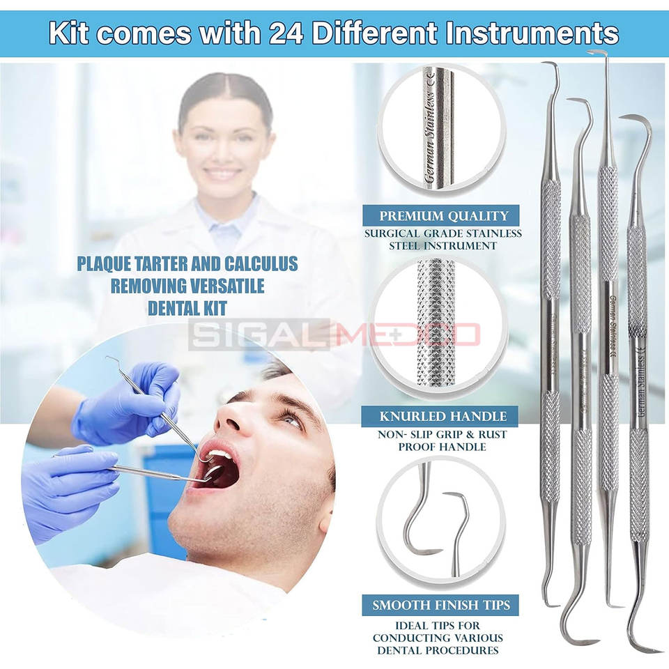 Kit de higiene dental profesional para el cuidado bucal completo Juego de herramientas de eliminación de placa y cálculo de acero inoxidable de grado O.R Premium