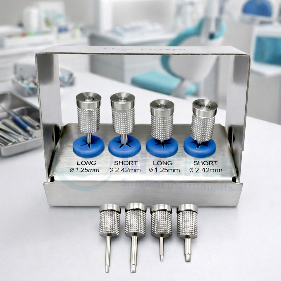 Kit Profesional de Destornilladores de Implantes Dentales de Acero Inoxidable, 4 Piezas, Largos y Cortos, Instrumentos Quirúrgicos Intensos, Ergonómicos