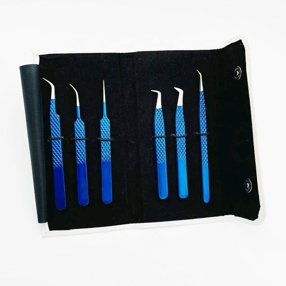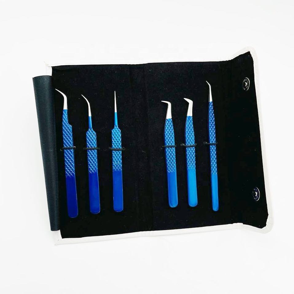 Juego de pinzas de extensión de pestañas de acero inoxidable recubiertas de azul Plasma con logotipo personalizado de agarre de diamante profesional cuidado Personal