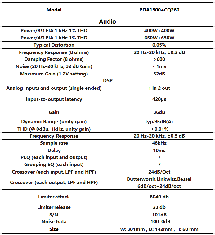 Tasa de muestreo:48kHz (módulo de amplificador con DSP activo)