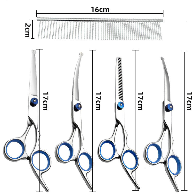 Juego de Tijeras Profesionales para Peluquería Canina, Kit de Tijeras de Acero Inoxidable para Mascotas con Tijeras Curvas de Adelgazamiento para Perros y Gatos