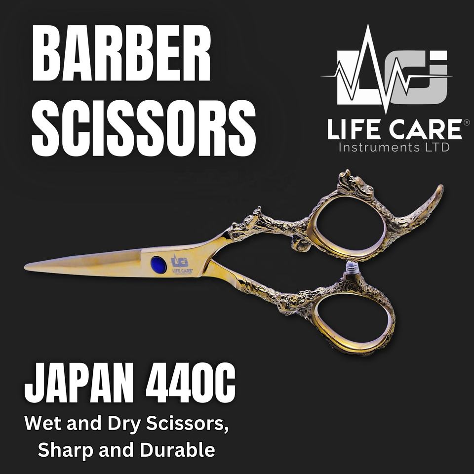 Tijeras profesionales de peluquería con mango de dragón, color dorado, de acero inoxidable, con marca personalizada de Life Care Instr
