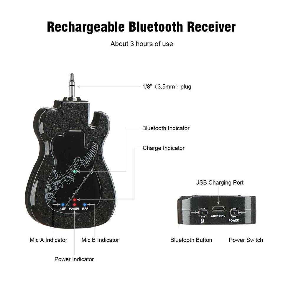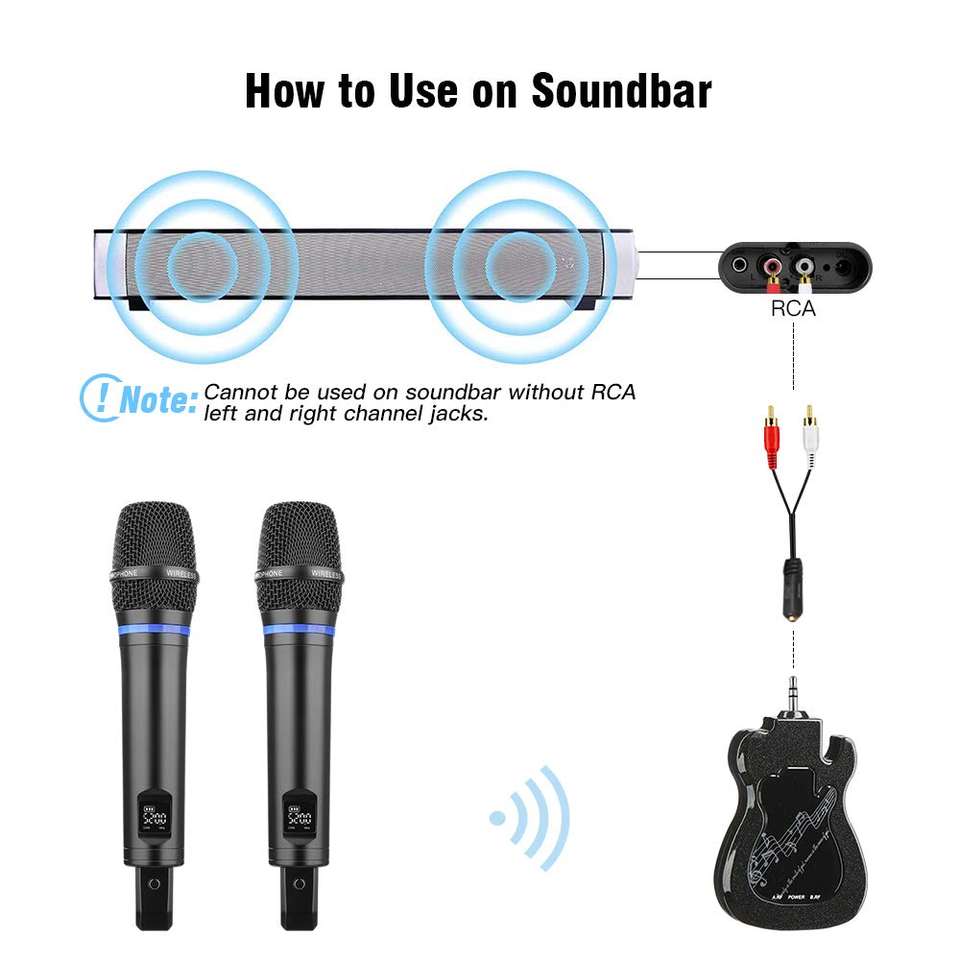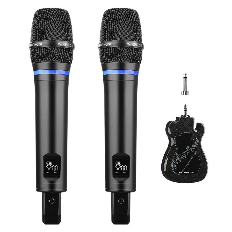 Sistema de Karaoke Inalámbrico Profesional Recargable con Dos Micrófonos Dinámicos UHF, Receptor BT, Material Metálico