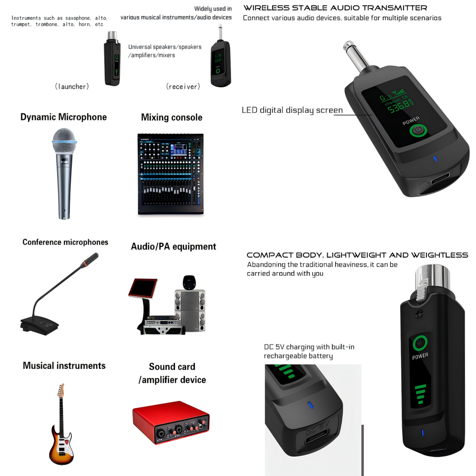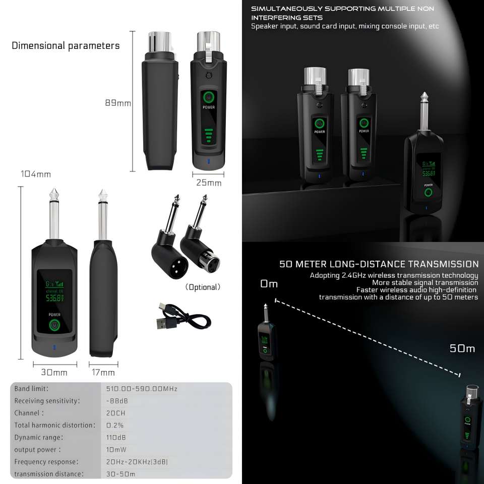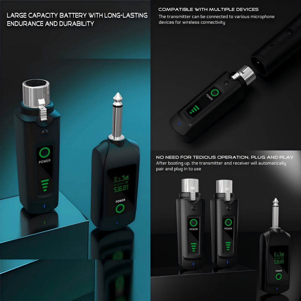 Sistema de Micrófono Inalámbrico Profesional Dinámico Cardioide de Mano con Luces LED, Cancelación de Ruido y Conector XLR Portátil Tipo Granada
