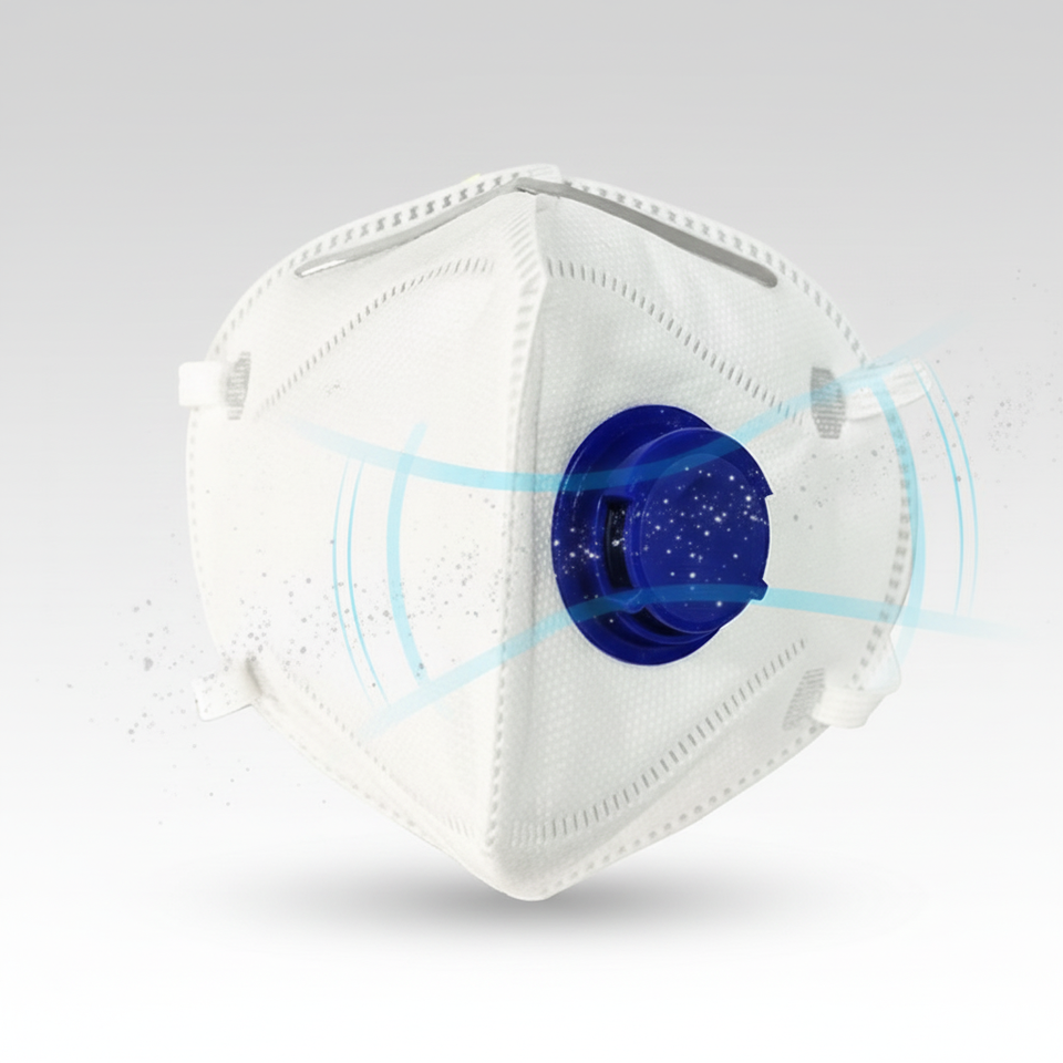 Mascarilla Respiratoria FFP2 con Válvula de Exhalación Profesional, Alta Eficiencia, Blanca, Equipo de Protección, Doble Correa