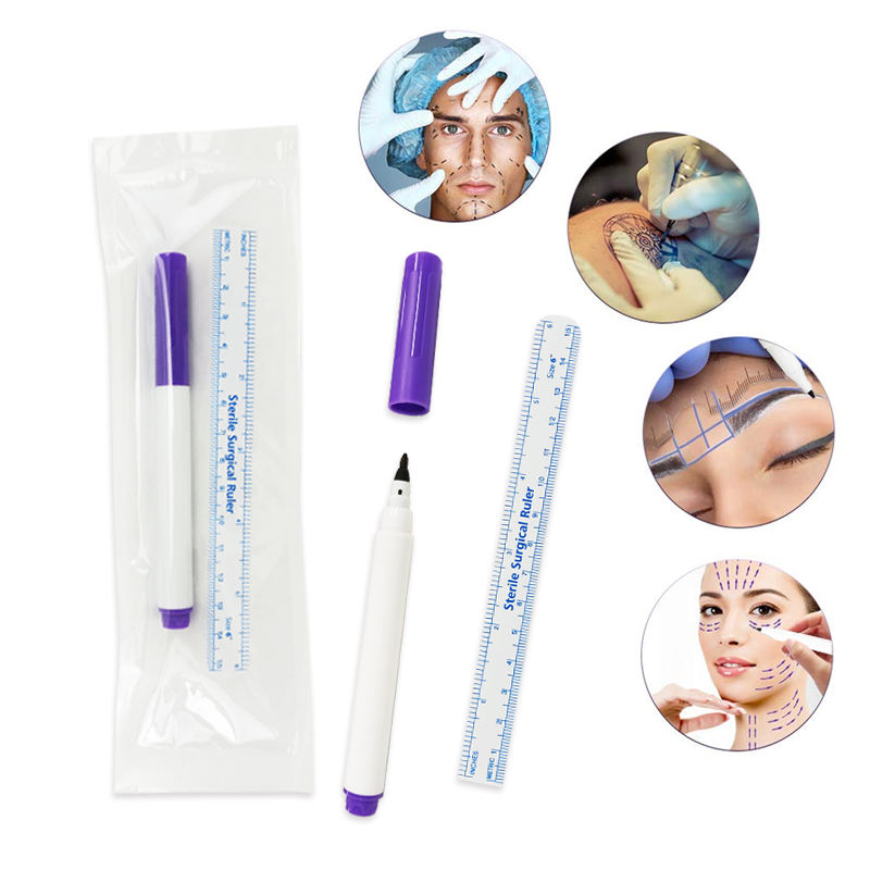 Tatuaje de cejas profesional con regla de papel estéril punta fina cirugía tatuaje quirúrgico piel Mini rotulador quirúrgico