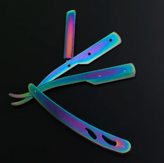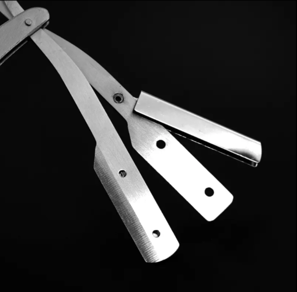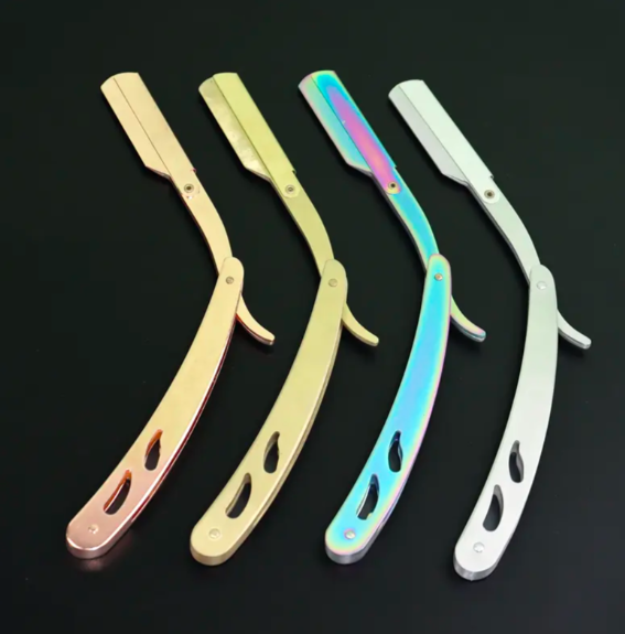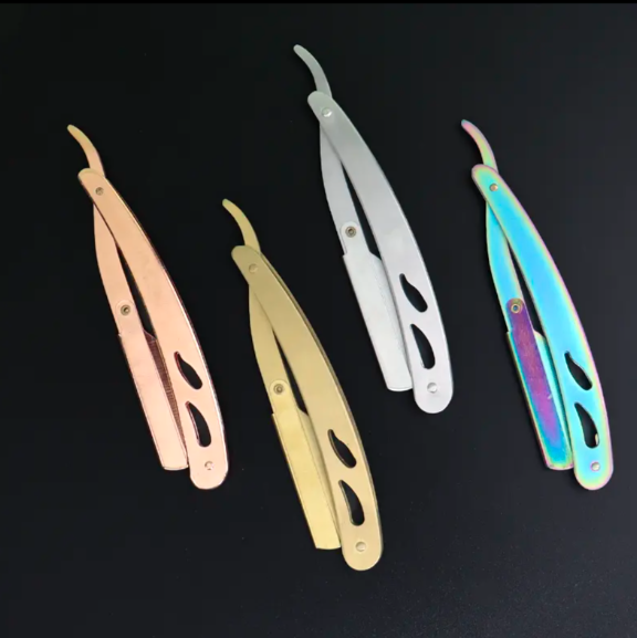 ANAAIF profesional de acero inoxidable para hombres, hoja plegable, maquinilla de afeitar, soportes de peluquero rectos faciales para herramientas de afeitado de barba, forma de polvo