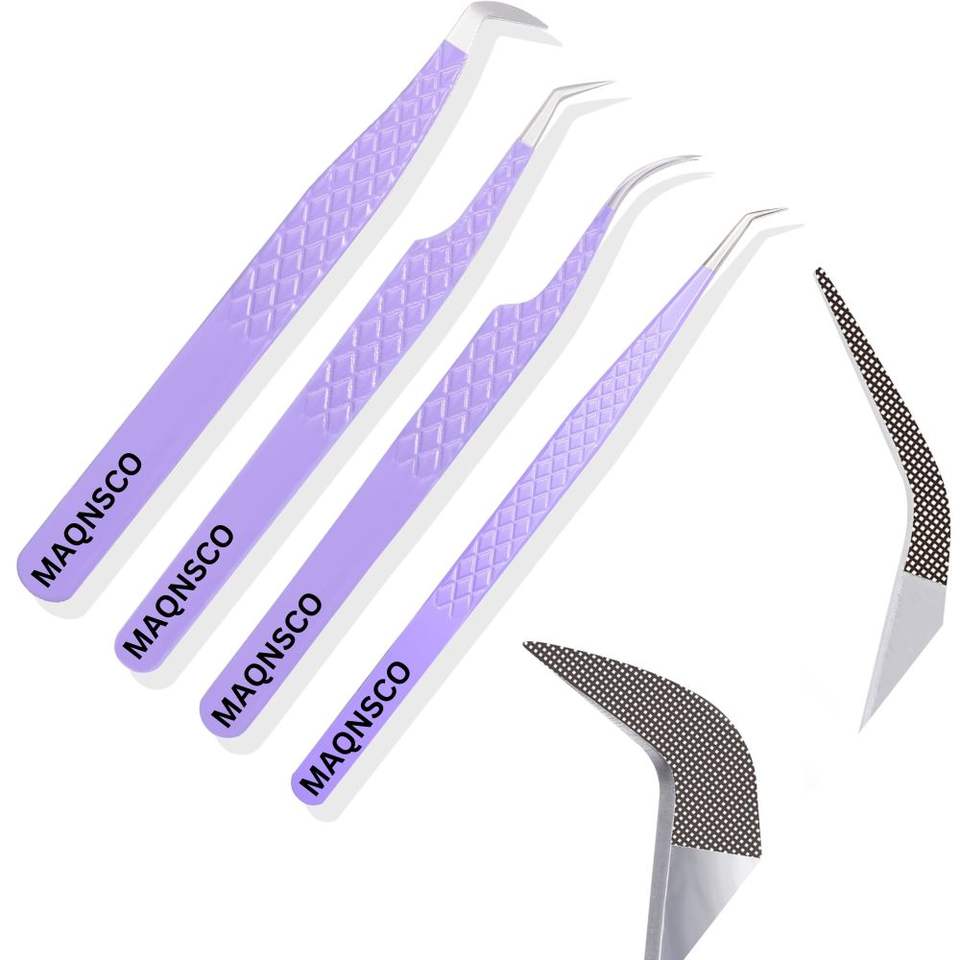 Product name:Fiber Tip Lash Tweezers Pack of 4 Eyelash Extension Tweezers