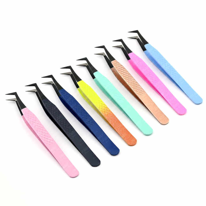 Pinzas de precisión de extensión de pestañas de volumen de punta fina profesional fácil de agarrar nunca se desliza antifatiga pinzas de aplicación rusas