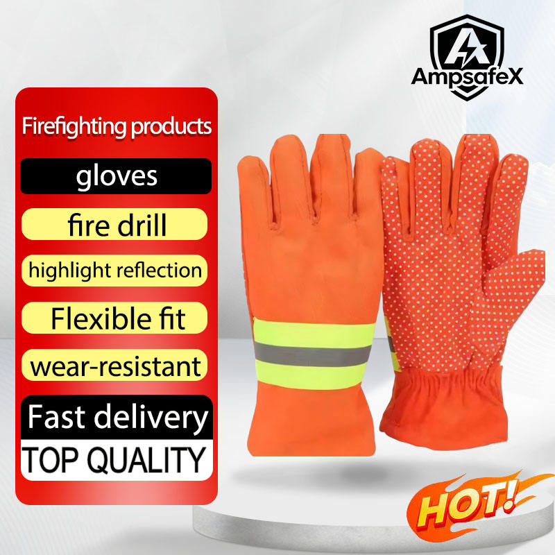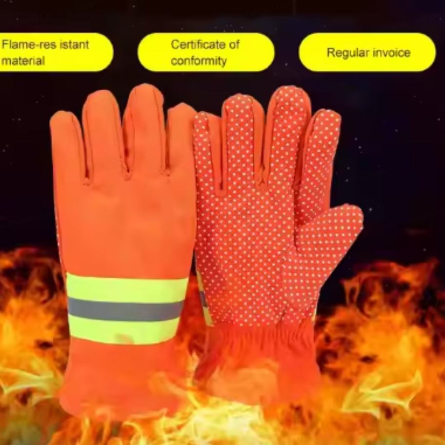 Guantes de Seguridad Profesionales para Rescate en Incendios AmpsafeX, de Algodón Naranja, Resistentes al Fuego, Protección Contra Altas Temperaturas, Antideslizantes, para Emergencias