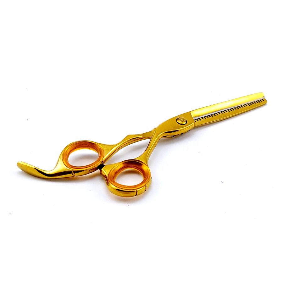 Tijeras de adelgazamiento de cabello de peluquero de oro profesional Tijeras de peluquería personalizadas con anillo de dedo extraíble