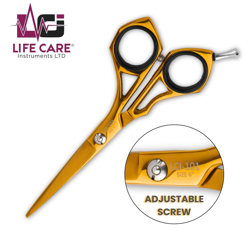 Tijeras de Peluquería Profesionales Color Dorado, Tres Anillos, Hechas con Acero Inoxidable Japonés por Life Care