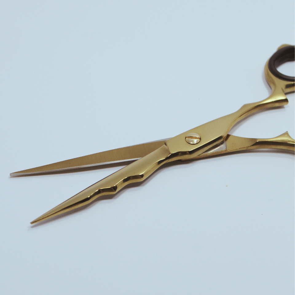 Tijeras de peluquero afiladas con acabado dorado profesional para peluquería y extensiones de cabello usadas y diseño de pelucas