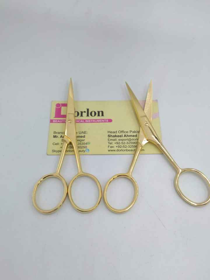 Tijera pequeña profesional chapada en oro, herramienta de maquillaje de acero inoxidable, Tijera con logotipo personalizado, tijera pequeña para cejas en Pakistán