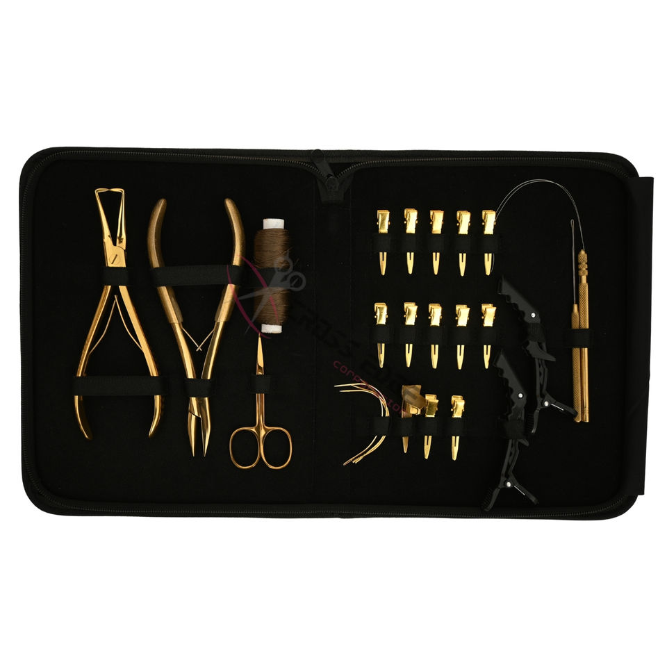 Kit profesional de herramientas para extensiones de cabello con pinzas de 7 pulgadas, tijeras mini para separar el cabello y agujas de coser.
