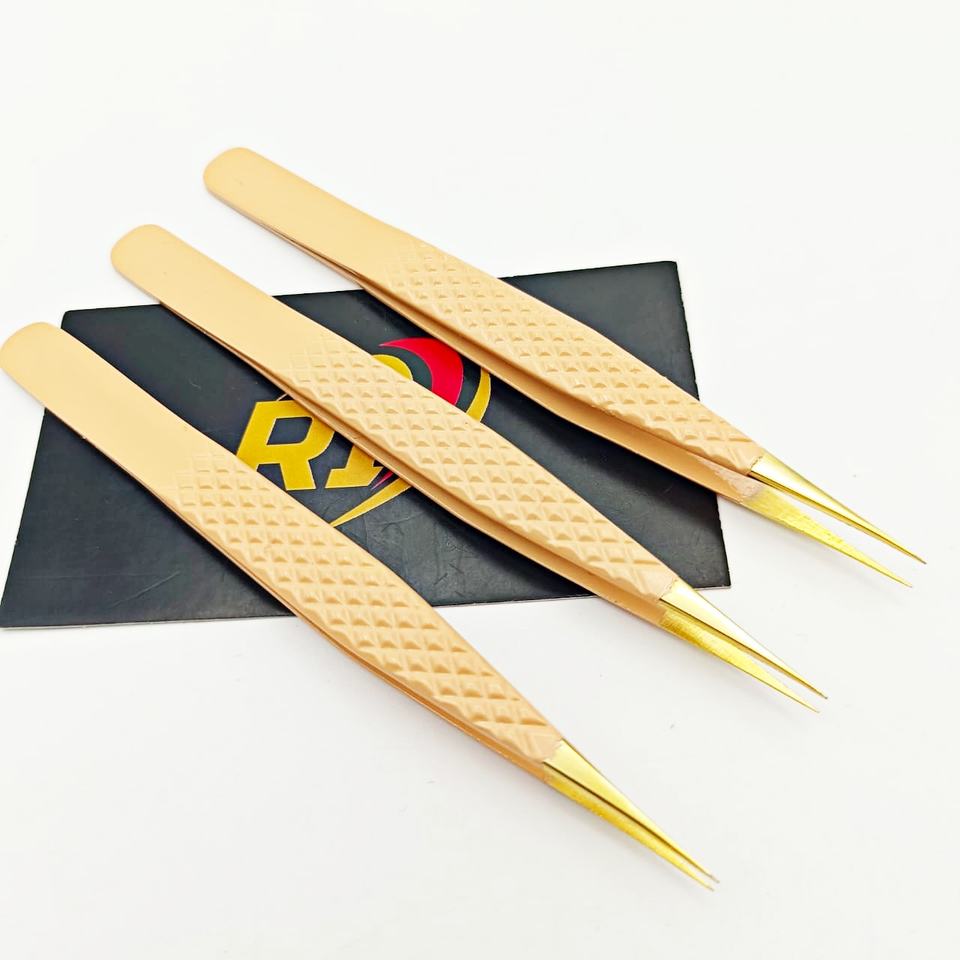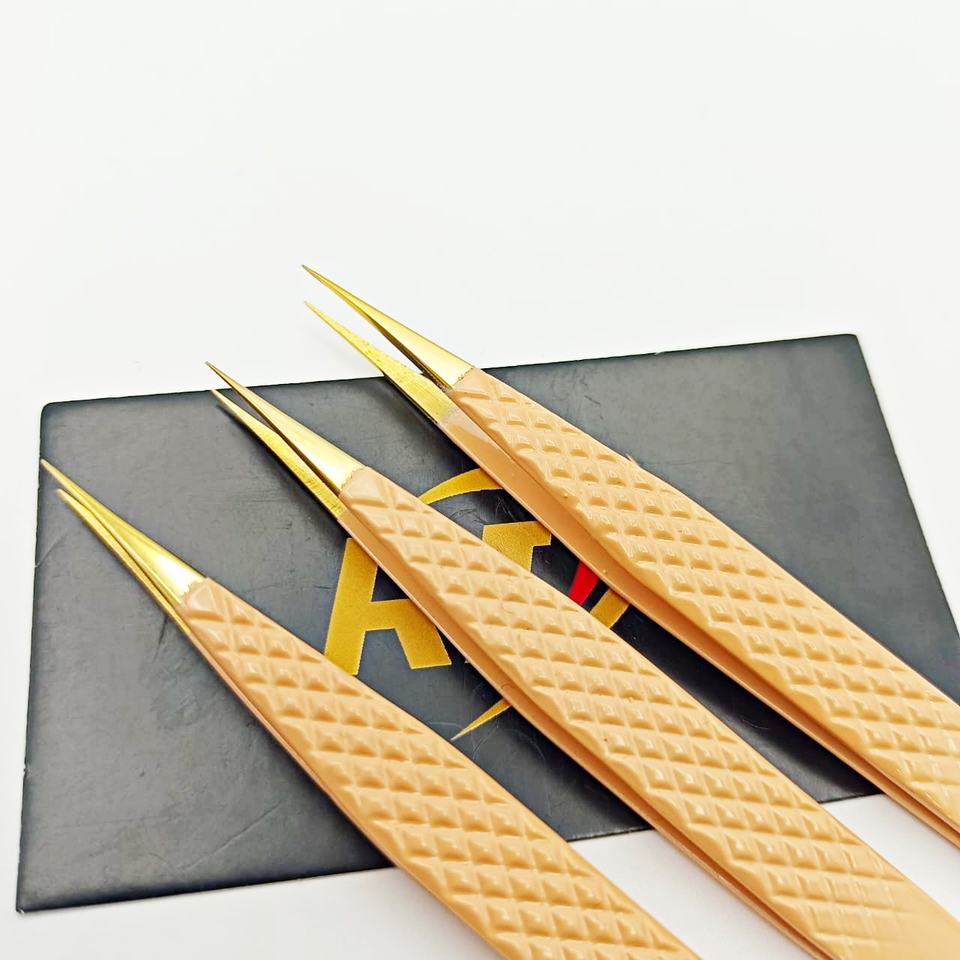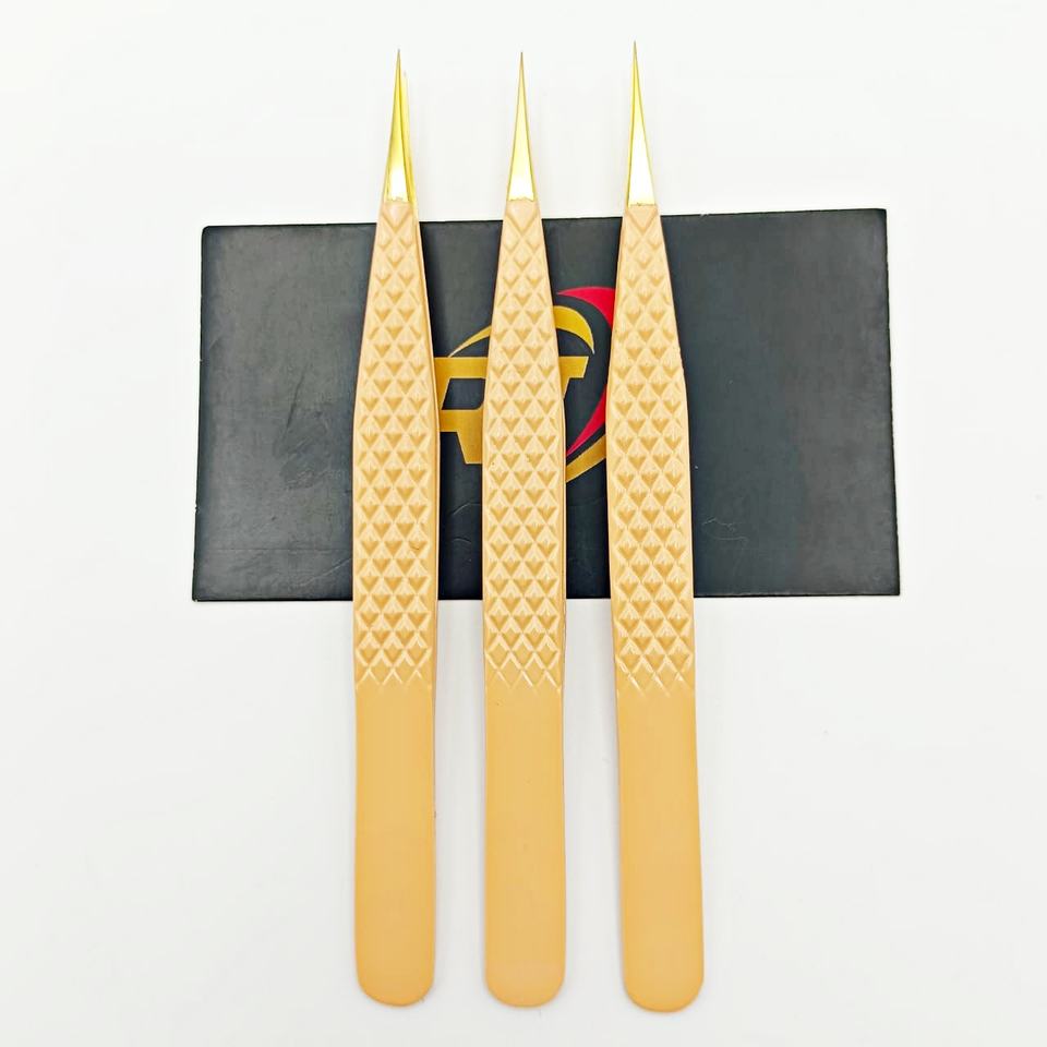 Pinzas de extensión de pestañas con agarre de diamante de punta dorada profesional, pinzas de Punta puntiaguda de aislamiento recto, herramientas de belleza ecológicas