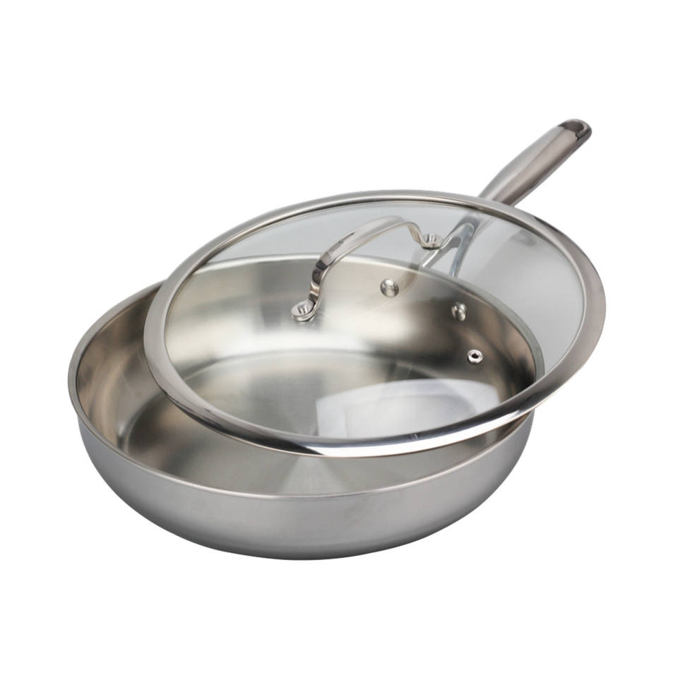 Sartén profesional de acero inoxidable de 3 capas con tapa de vidrio