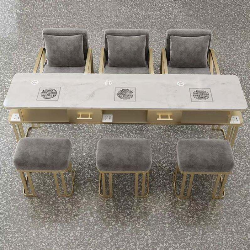 Juego de mesa y silla de manicura gris profesional un juego completo de muebles de salón con aspiradora de Puerto Usb de almacenamiento