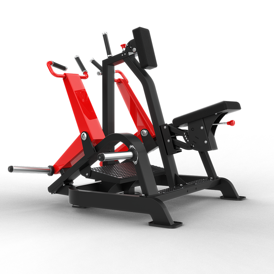 Máquina de remo profesional de uso comercial con asiento metálico y características de seguridad para entrenamiento de fuerza de espalda