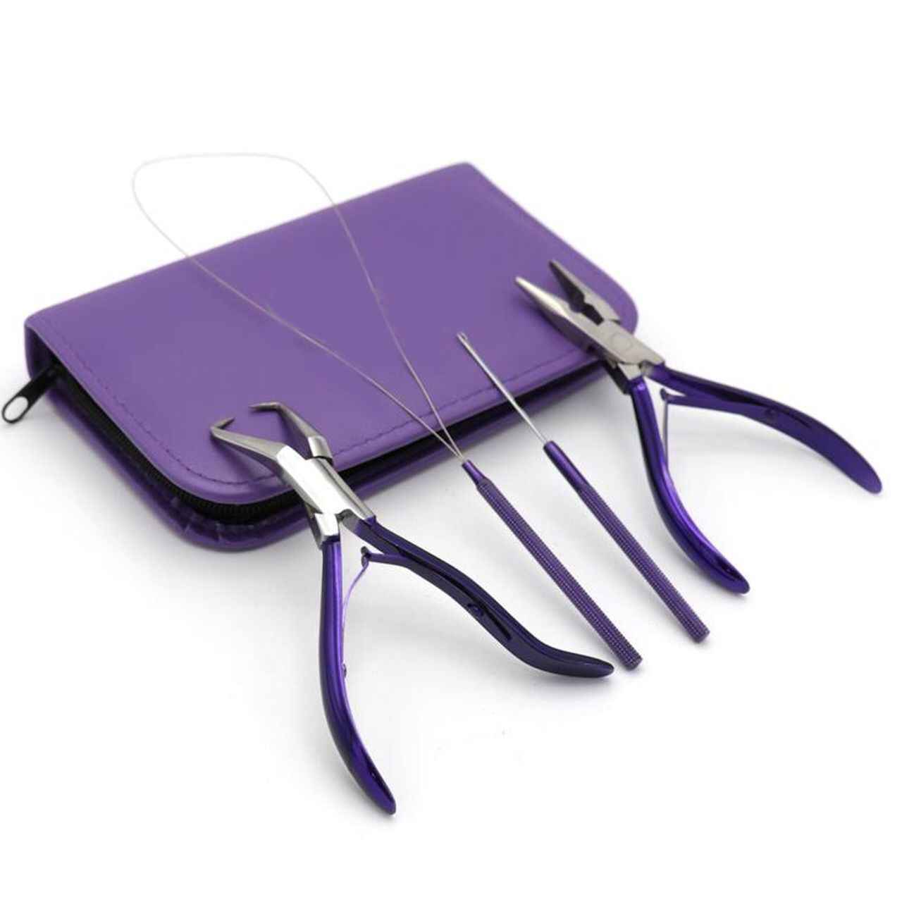 Kit de herramientas profesionales para extensión de cabello y abalorios, juego de alicates para cuentas (4 piezas), Micro anillo (púrpura)