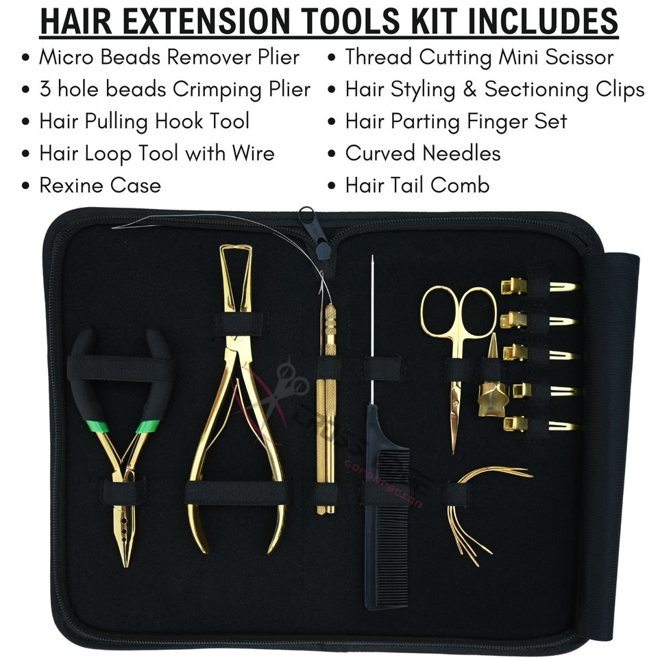 Kit profesional de extensiones de cabello con alicates de engarzado de microanillos