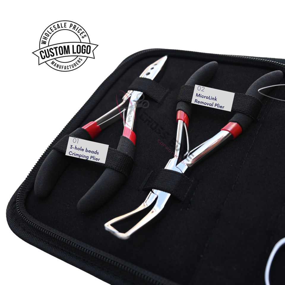 MOQ:1 estuche de herramientas para extensiones de cabello, alicates para extensiones de cabello